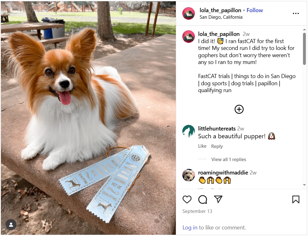 Also, check out lola_the_papillon, little dogs can run too. (sorry for mispronouncing the breed name over the radio on Sunday!)
